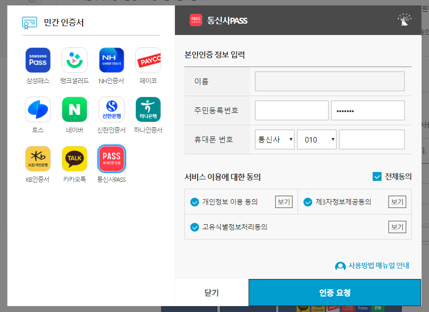 선택하신 인증 방법을 통해 본인 인증을 진행하시면 됩니다. 이후 추가 정보 확인 과정에서 '부 성명, 모 성명, 배우자 성명, 자녀 성명, 등록기준지' 중에 하나를 선택하셔야 합니다.