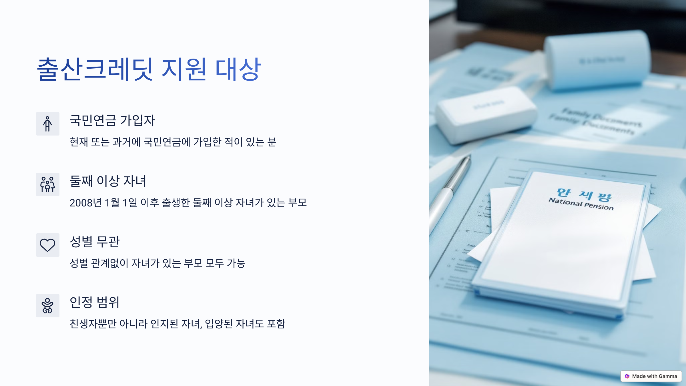 정부에서 저출산 문제 해결을 위해 다양한 지원 정책을 내놓고 있지만, 아직 많은 분들이 잘 모르고 계신 혜택이 있어요. 특히 국민연금 출산크레딧은 알고 보면 정말 든든한 혜택인데요.