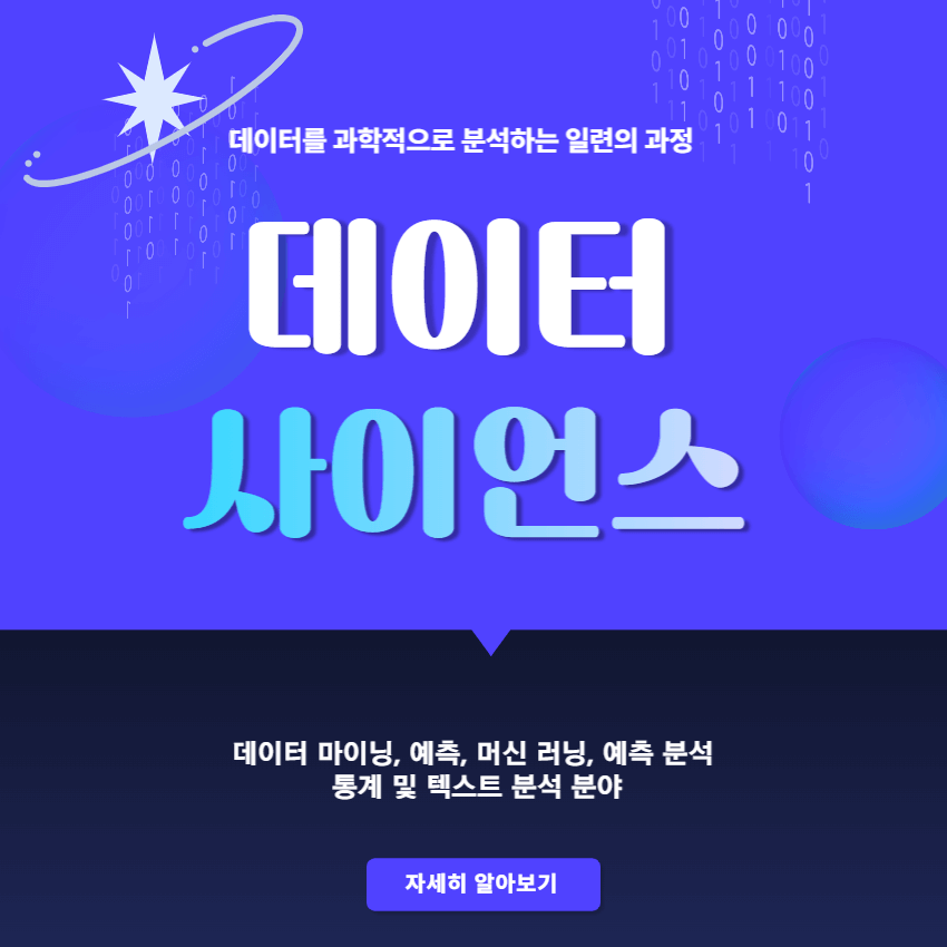 "데이터 사이언스"는 데이터 수집, 전처리, 분석, 시각화, 모델링, 예측, 최적화 등 다양한 분야를 포함하고 있어야 하며, 이를 위해 다양한 기술과 지식이 필요합니다. 데이터 사이언스는 빅데이터 시대에서 필수적인 역할을 하고 있으며, 더 나아가 인공지능, 머신러닝, 딥러닝 등의 기술과 함께 미래를 이끌어갈 중요한 분야입니다. 이상 "데이터 사이언스"에 대해 총정리해봤습니다.