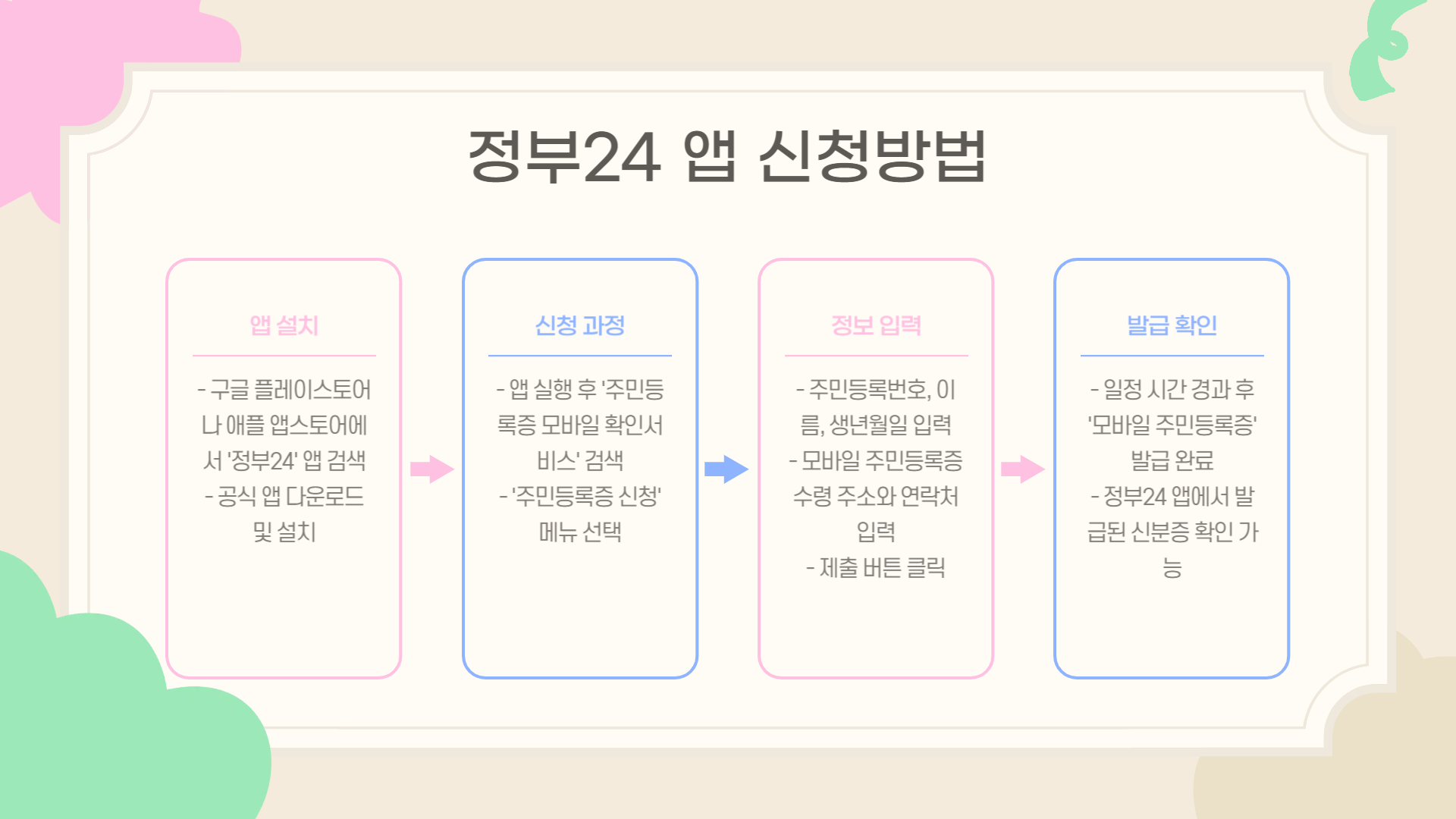 - 일정 시간이 지나면 ‘모바일 주민등록증’이 발급되며, 정부24 앱에서 확인할 수 있습니다.