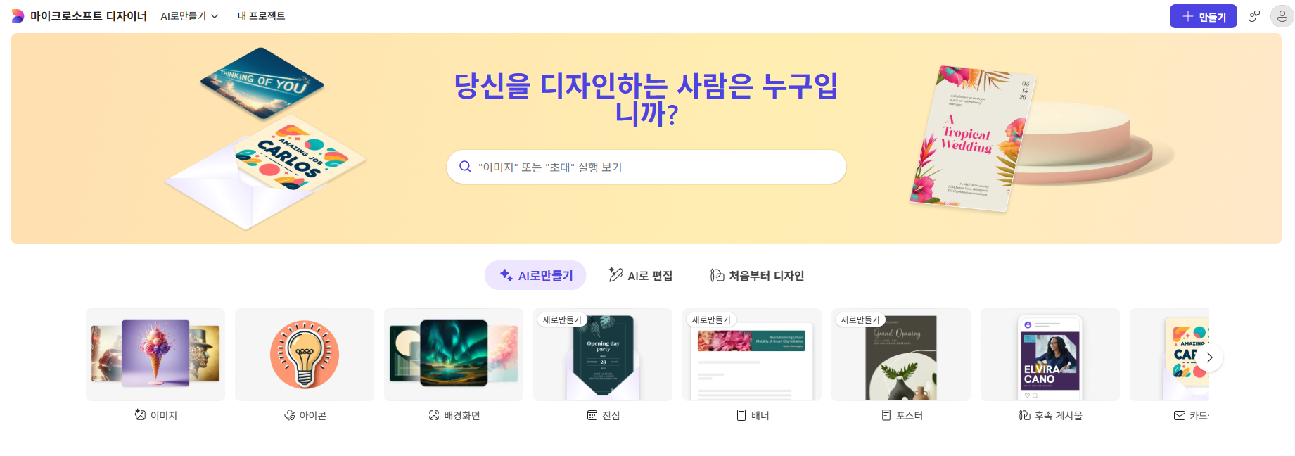 AI 그림 생성 도구는 정말 많지만, 이번에는 ‘Microsoft Designer’라는 쉬운 툴을 예로 들어볼게요.