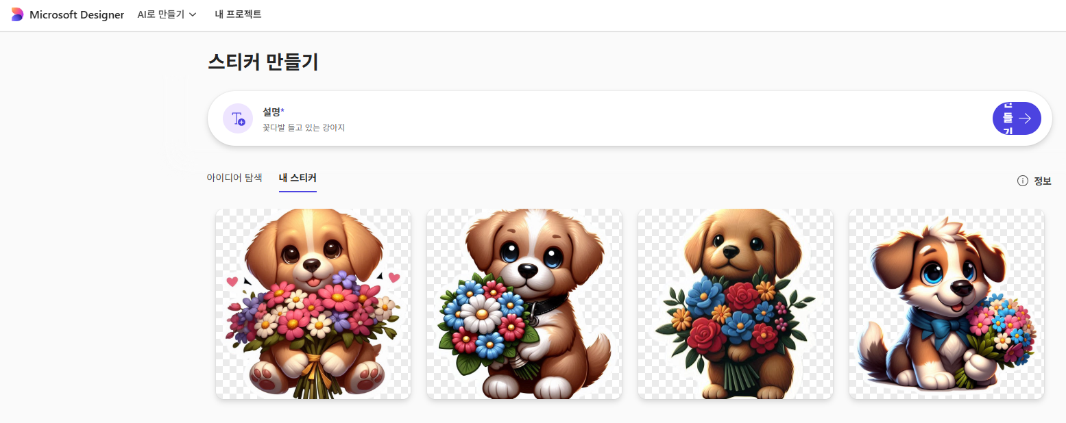 🐶 “꽃다발 들고 있는 귀여운 강아지” 정말 간단한 문장 하나로도, AI가 센스 있게 그림을 그려준답니다. 처음에는 짧고 쉬운 문장부터 시작하는 걸 추천드려요!