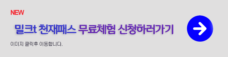 이런 학생들을 위해 밀크t에서 중등 천재패스 무료체험을 진행하고 있는데요. 중학교 공부는 초등학교와는 다르게 과목수도 많아지고 난이도도 높아지기 때문에 미리미리 준비해야 되는데요, 울아이 밀크t로 상위권 되게 해 준 중등 천재패스를 알아보겠습니다.