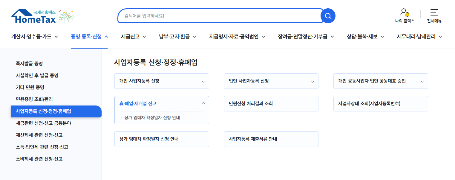 • 홈택스나 BIZINFO에서 '폐업' 표시 확인