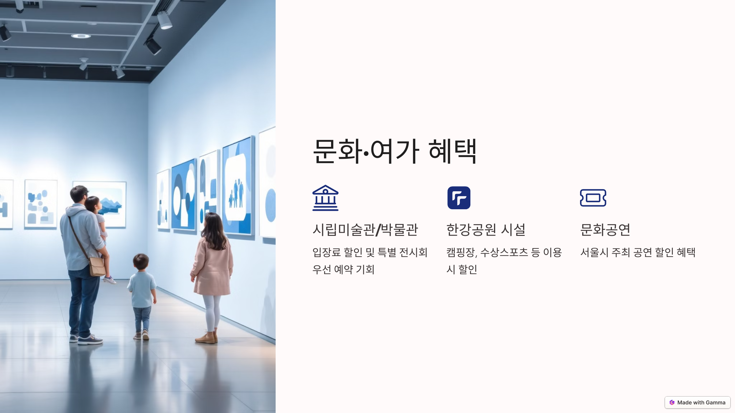 - 시립미술관/박물관: 입장료 할인 및 특별 전시회 우선 예약 기회