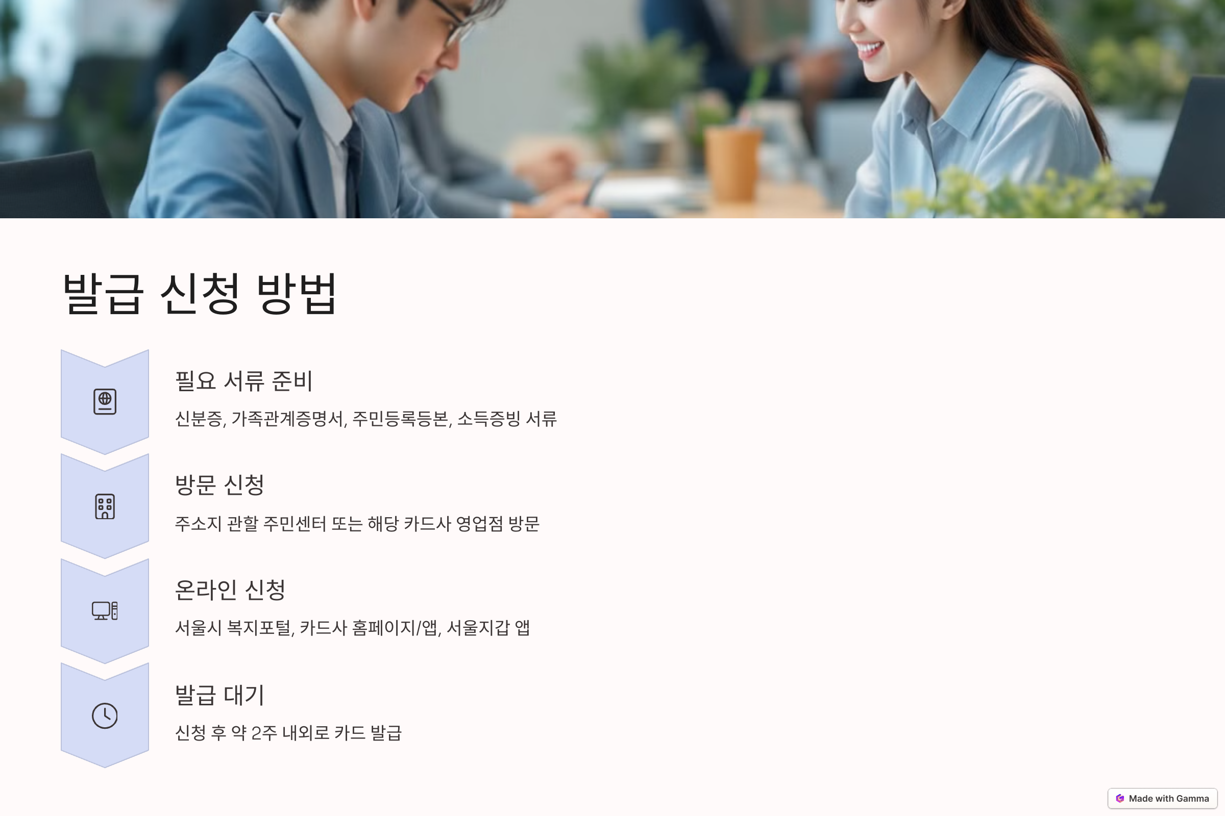 - 신청 후 약 2주 내외로 카드가 발급됩니다.