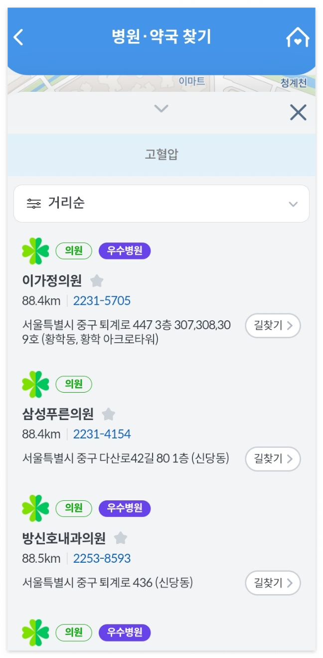 또한 병원들이 검색되긴 했는데 우수병원 표시가 되어 있는 병원이 없을 수도 있습니다. 이건 지역에 따라 달라질 수 있는 부분이니 이점은 참고해 주시길 바랍니다.