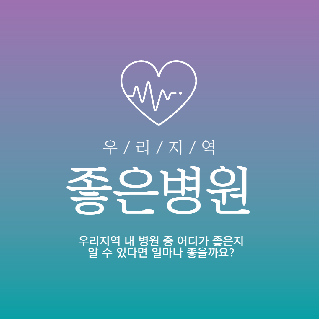 사실 우리 같은 일반 사람들은 해당 병원이 어떤 병원인지 객관적인 자료를 평가할 수 있는 게 없는데요. 그러다 보니 그동안 누가 알려줘서 다니거나 유명하다 싶으면 다니는데 이제는 우리도 이런 데이터를 통해 좋은 병원인지 아닌지 구별할 수 있는 거니까 일반사람들에게 정말 많은 도움이 될 것 같아 우리지역 좋은병원을 이렇게 정리해 봤습니다.