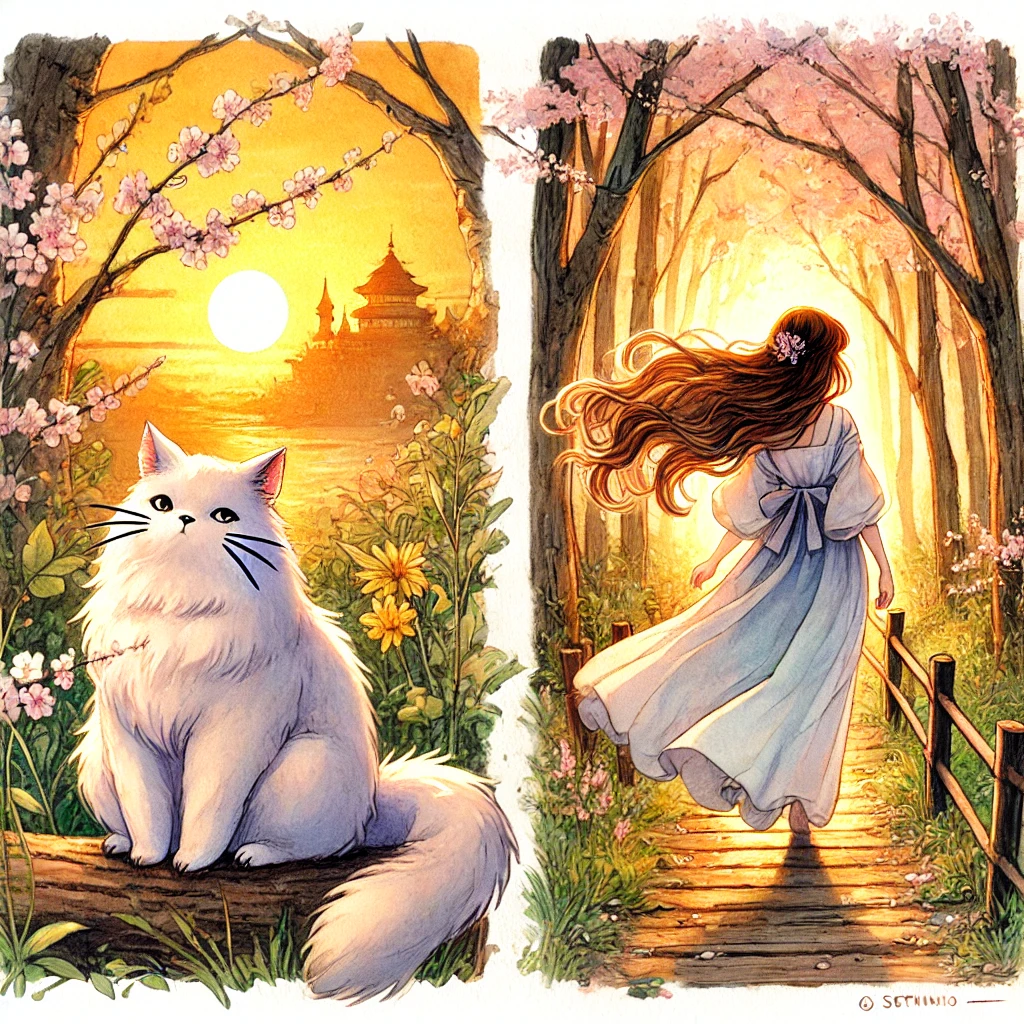 등장 인물: “귀여운 고양이”, “이쁜 웨이브 소녀”,