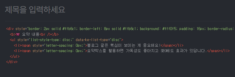 🎀 HTML 모드에서 핵심 박스 붙여넣기 가이드
