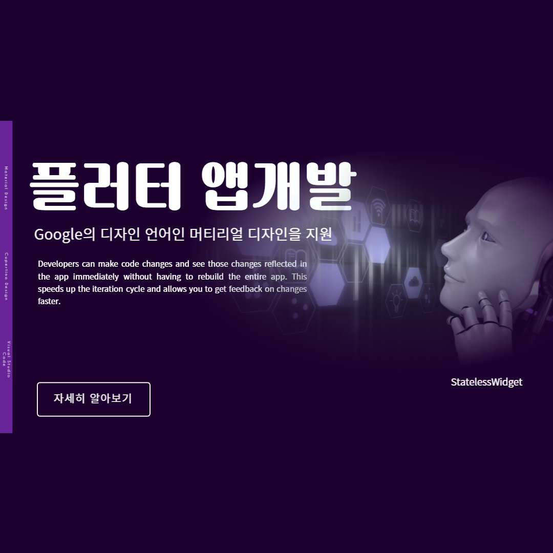 또한 "플러터"는 아름답고 직관적인 앱을 만들기 위한 Google의 디자인 언어인 머티리얼 디자인을 지원하고 있어요. 플러터는 내장 위젯 외에도 강력한 개발자 커뮤니티와 고품질 애플리케이션을 쉽게 빌드하고 배포할 수 있는 강력한 도구 및 라이브러리 세트를 보유하고 있습니다.