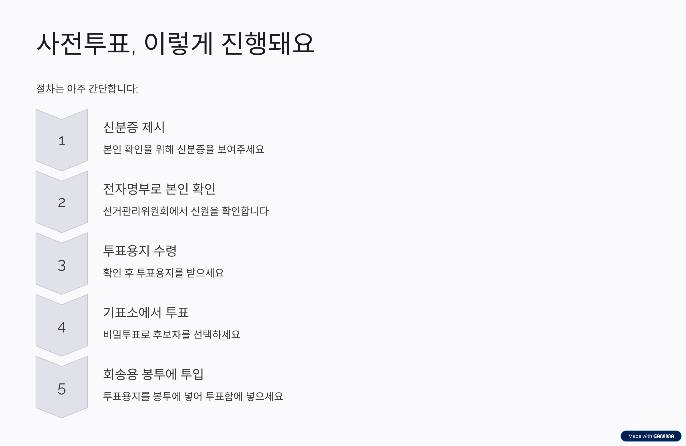 🗳️ 사전투표의 절차는 다음과 같이 진행됩니다.