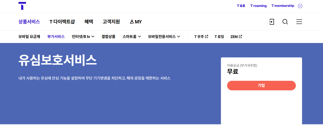 - [부가서비스] → [보안] → [유심 보호 서비스 가입] 선택